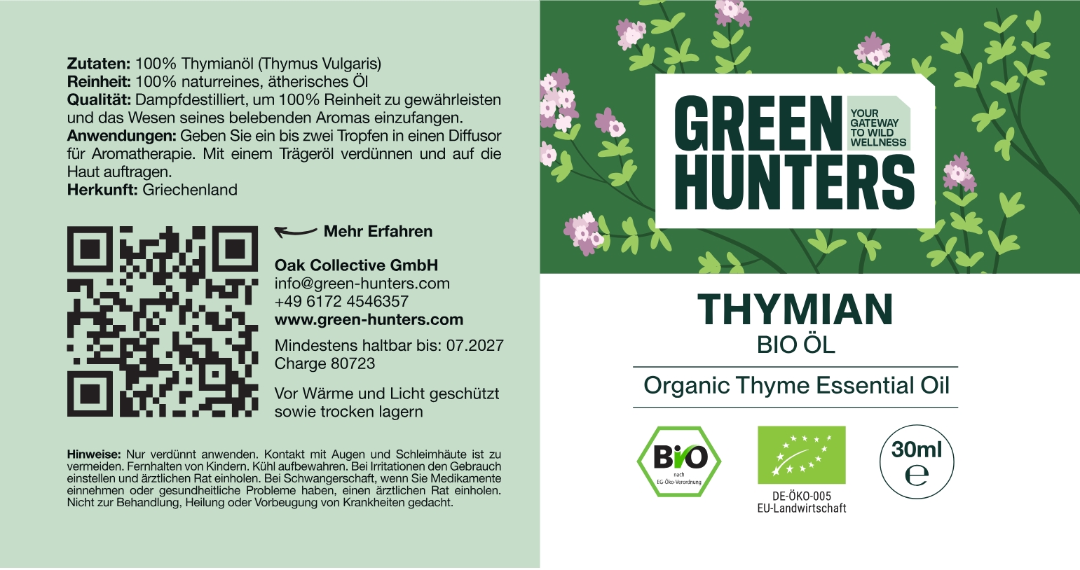 Entdecke Thymianöl – ein echtes Kraftpaket aus der Natur! Schon im alten Griechenland glaubte man, dass Thymian Mut verleiht und sogar Albträume vertreibt – nicht umsonst leitet sich der Name vom griechischen Wort für „Stärke“ ab. Heute schätzt man Thymianöl vor allem wegen seiner starken antibakteriellen, antiviralen und antimykotischen Eigenschaften. Es wird in der traditionellen Kräutermedizin eingesetzt, um das Immunsystem zu stärken und Infektionen zu bekämpfen. Unser zertifiziertes Thymianöl bringt diese geballte Pflanzenkraft direkt in deine Wellness-Routine. Jeder Tropfen enthält die pure Energie der Natur – für mehr Wohlbefinden, Schutz und Vitalität im Alltag.